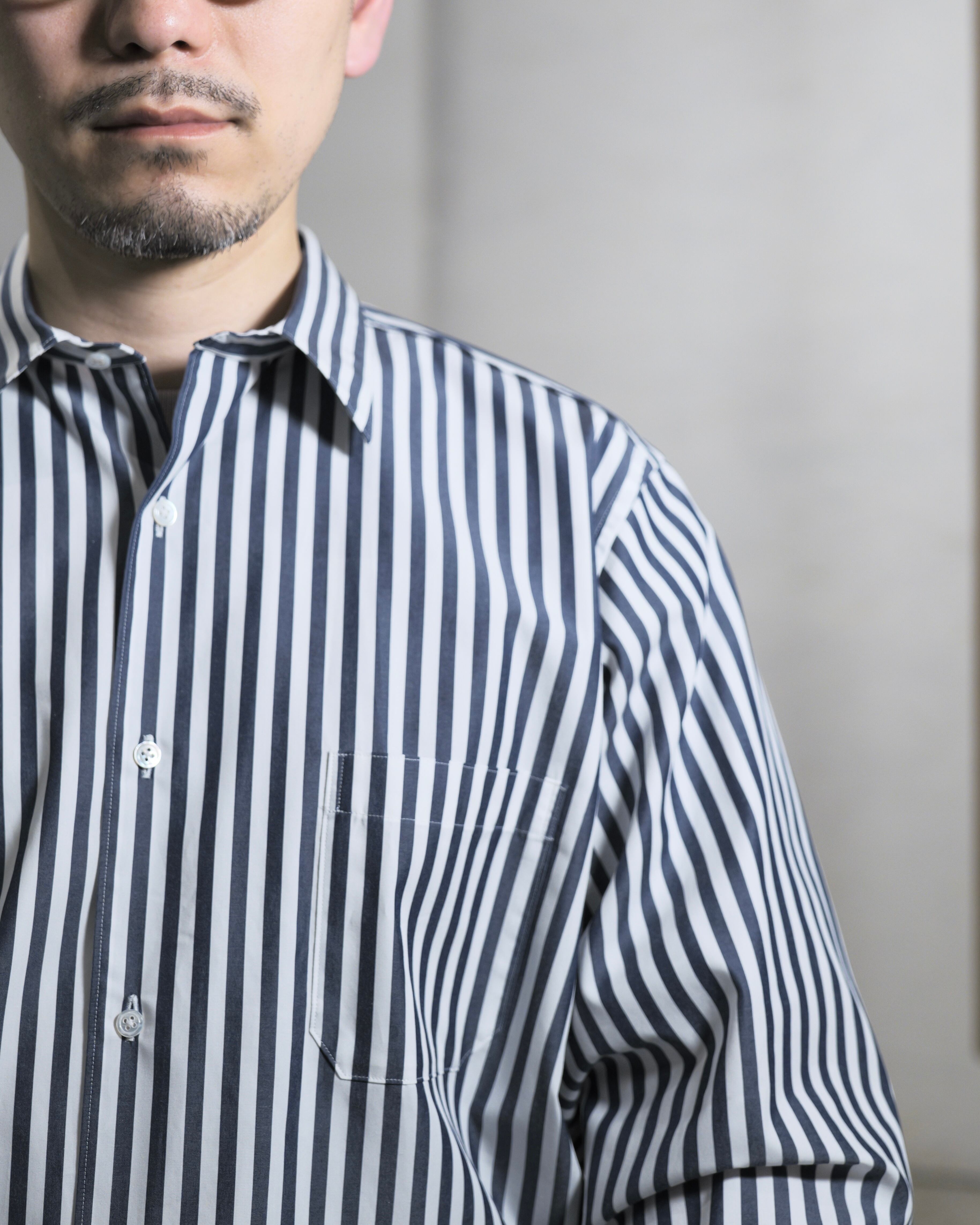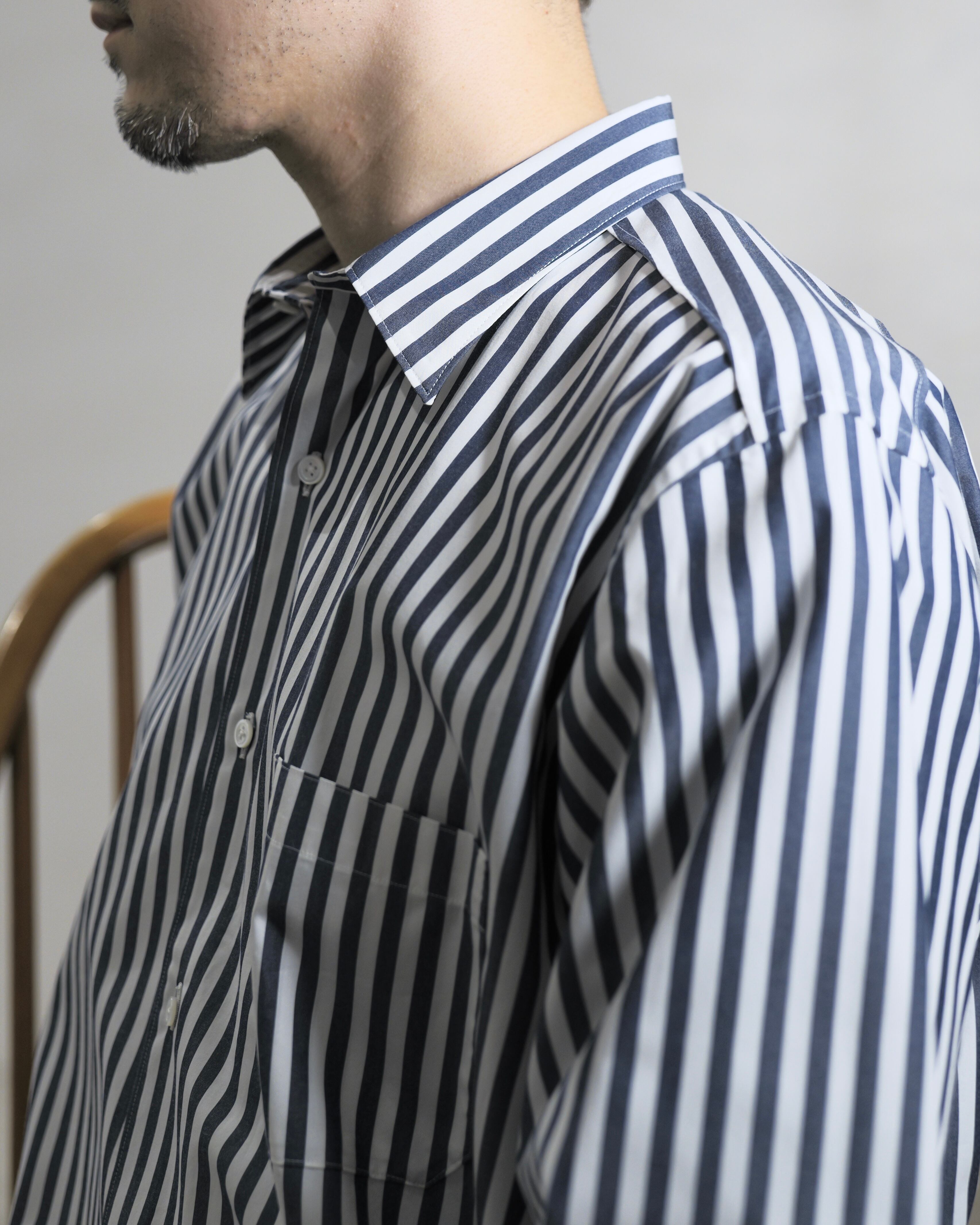 少しゆとりのあるシンプルで綺麗なシルエットのシャツで