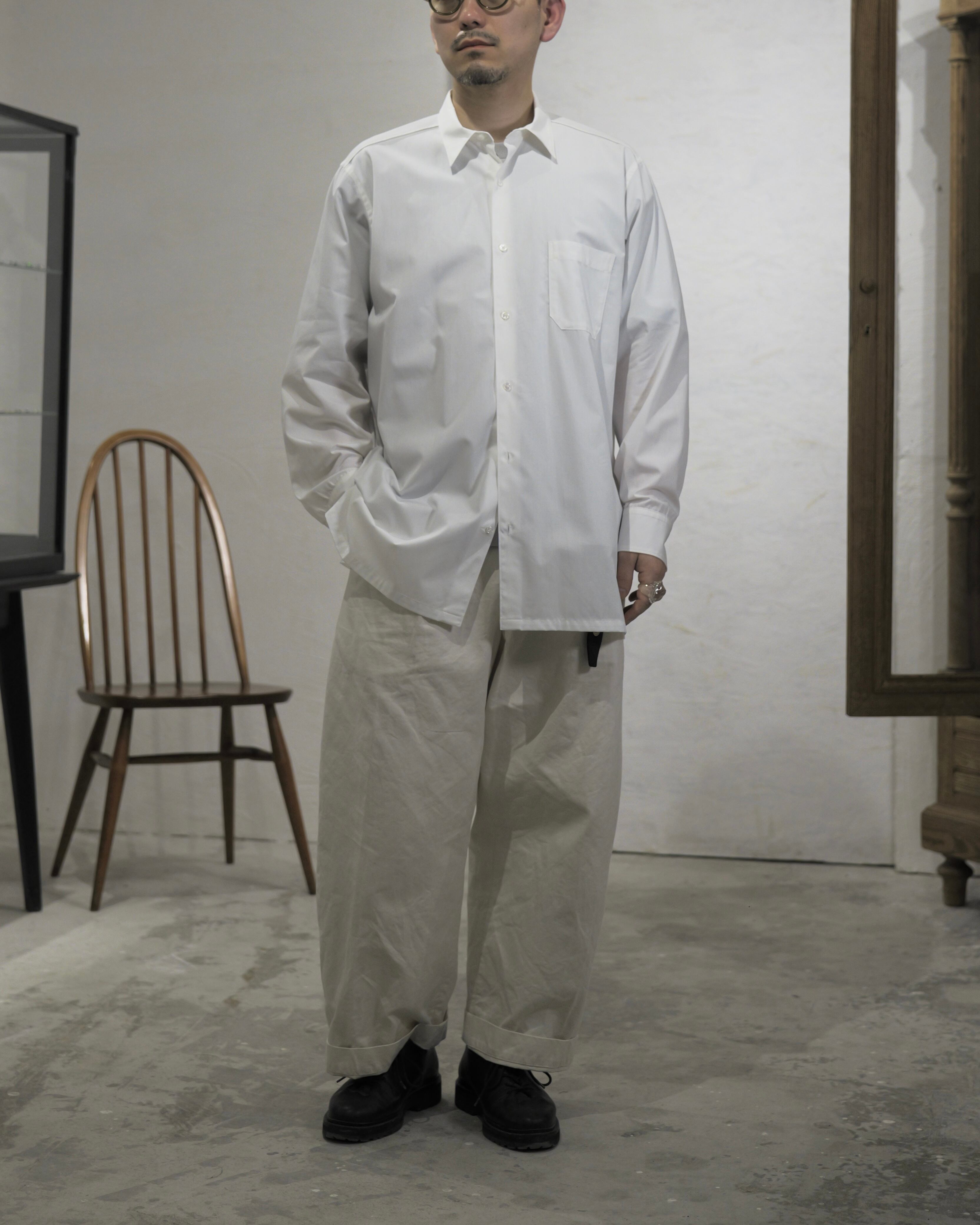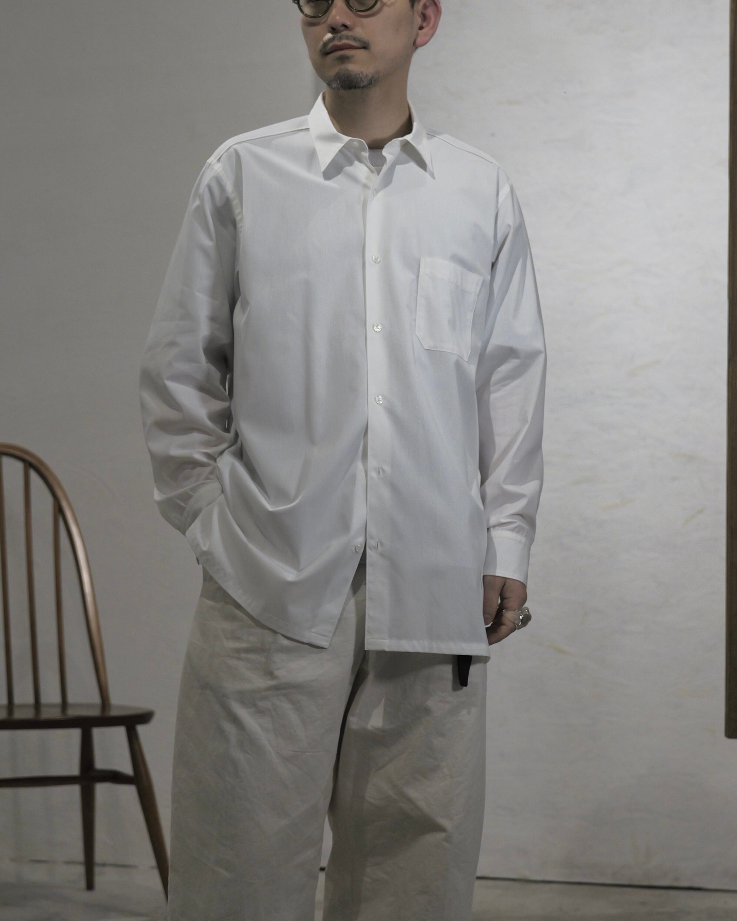 少しゆとりのあるシンプルで綺麗なシルエットのシャツで