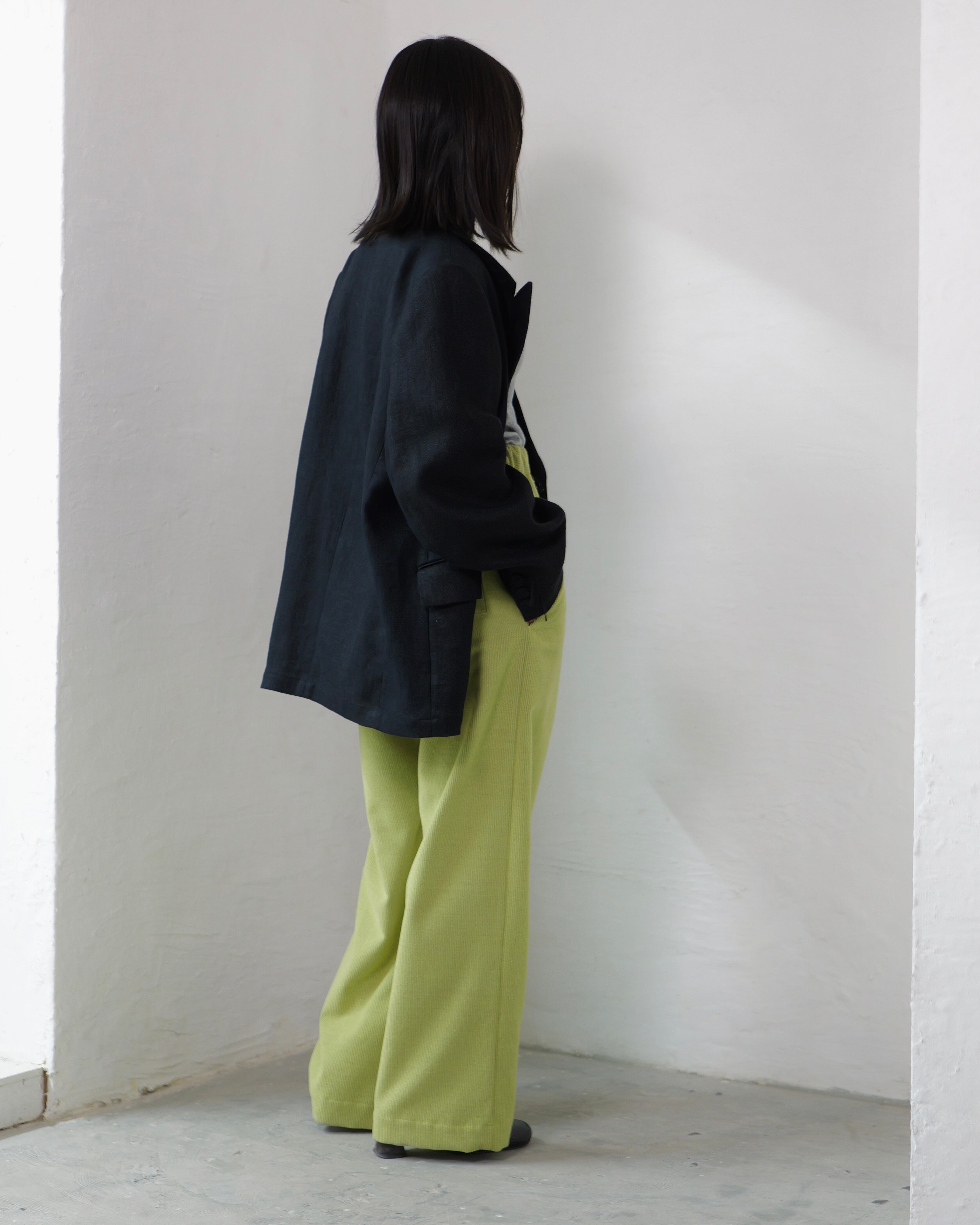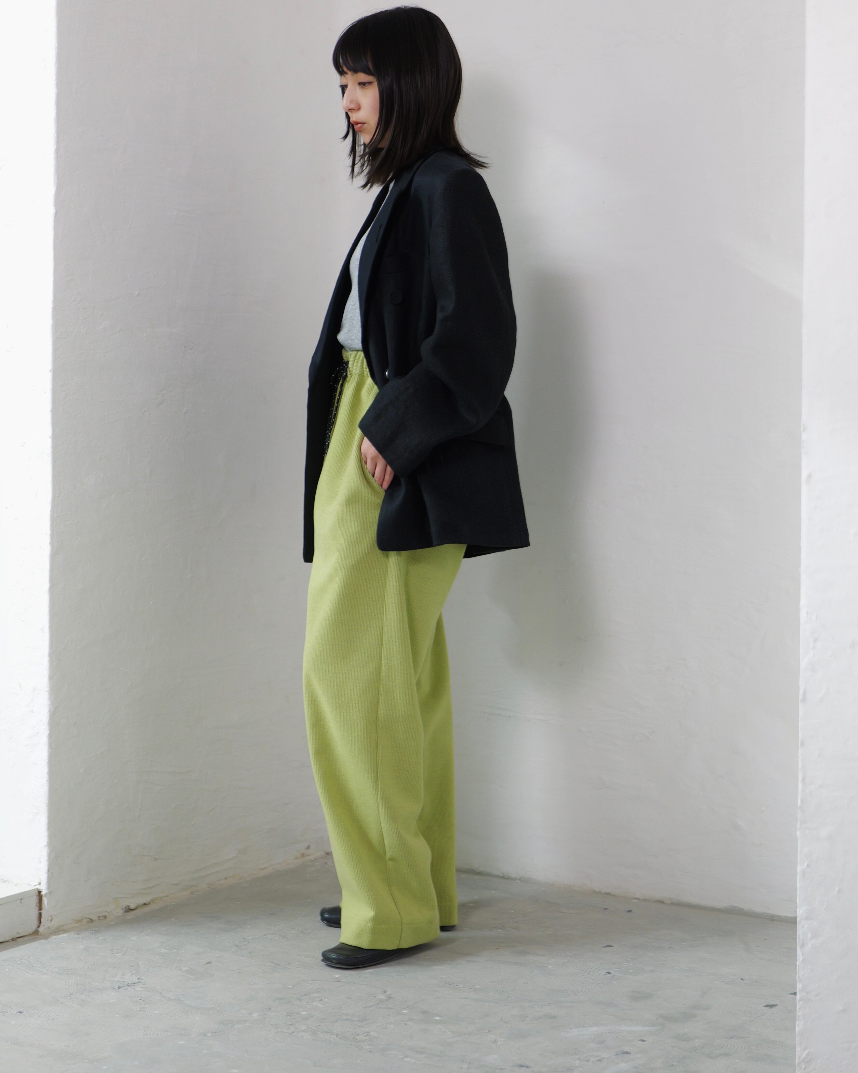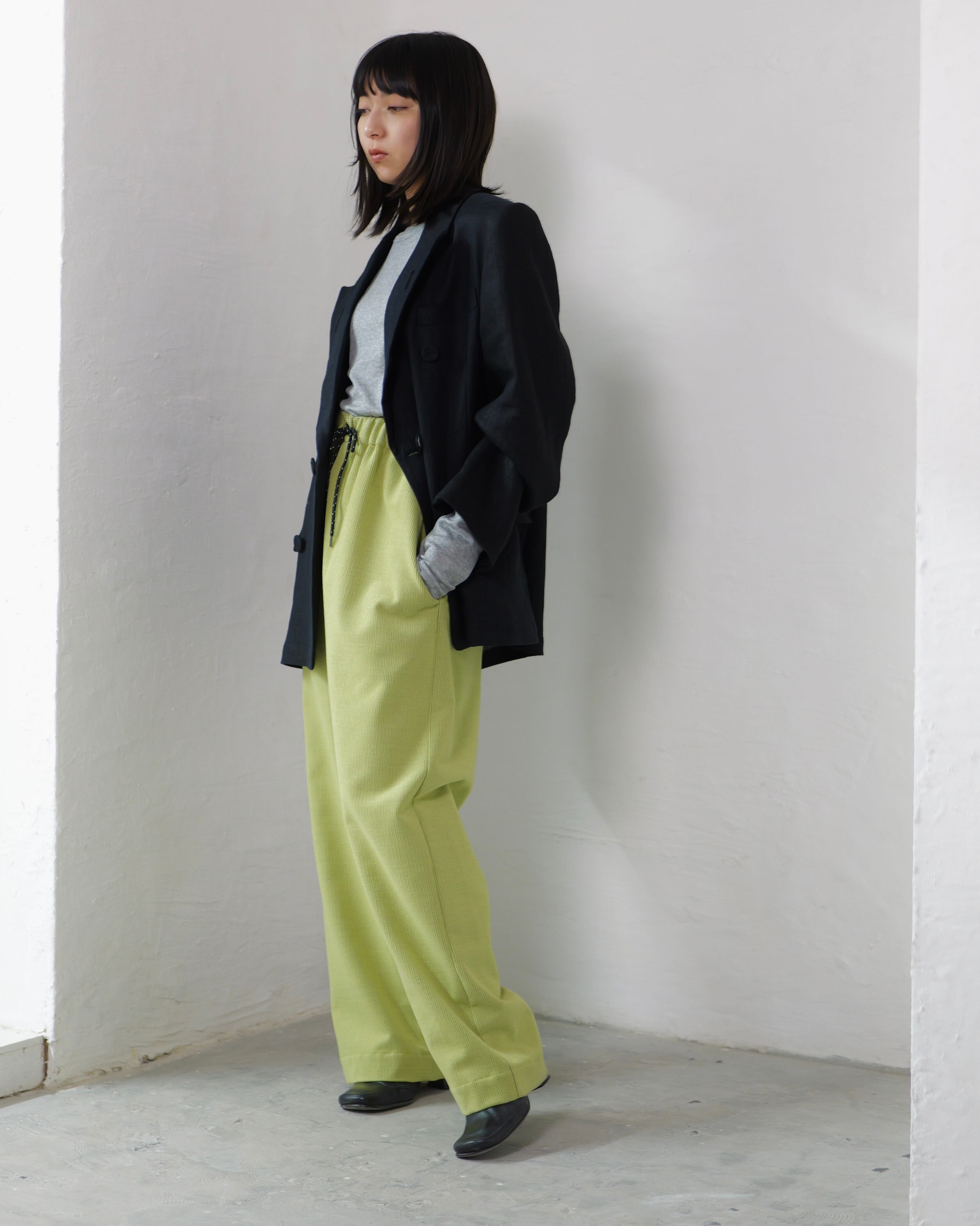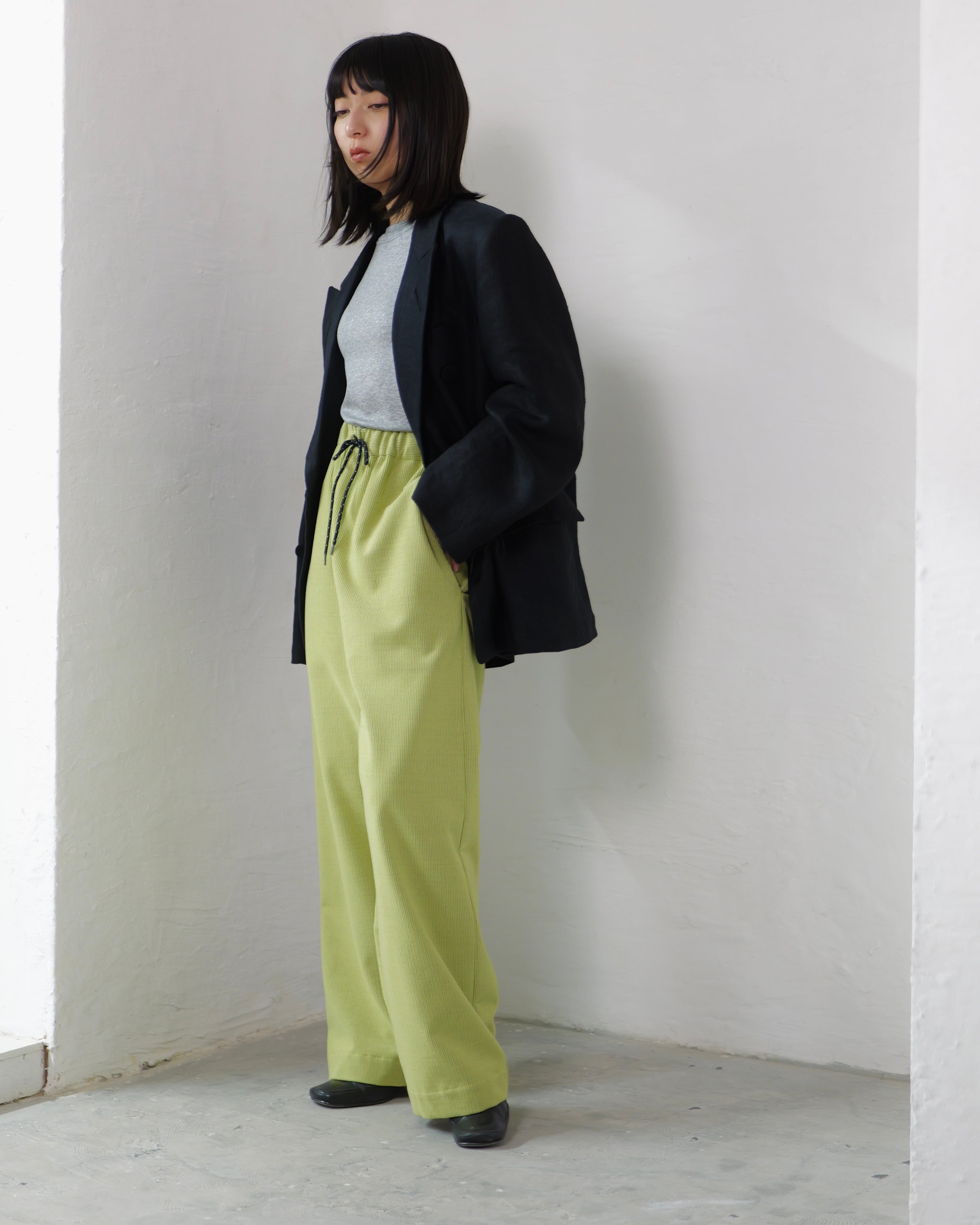 itochi - Wool & Cashmere Corduroy Salt Easy Pants :Lime|ウール×カシミヤコーデュロイ/繊細な起毛/ストレートイージー