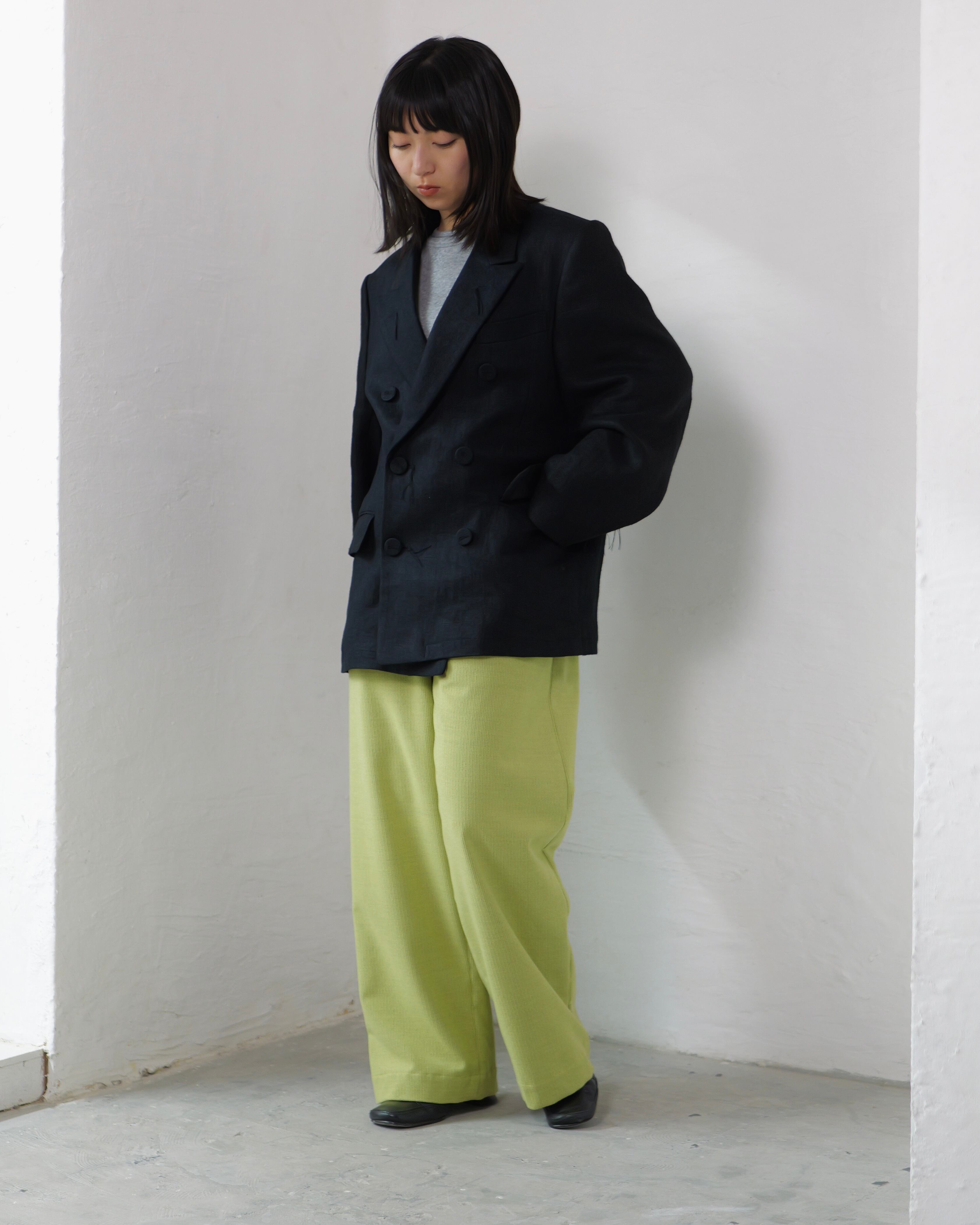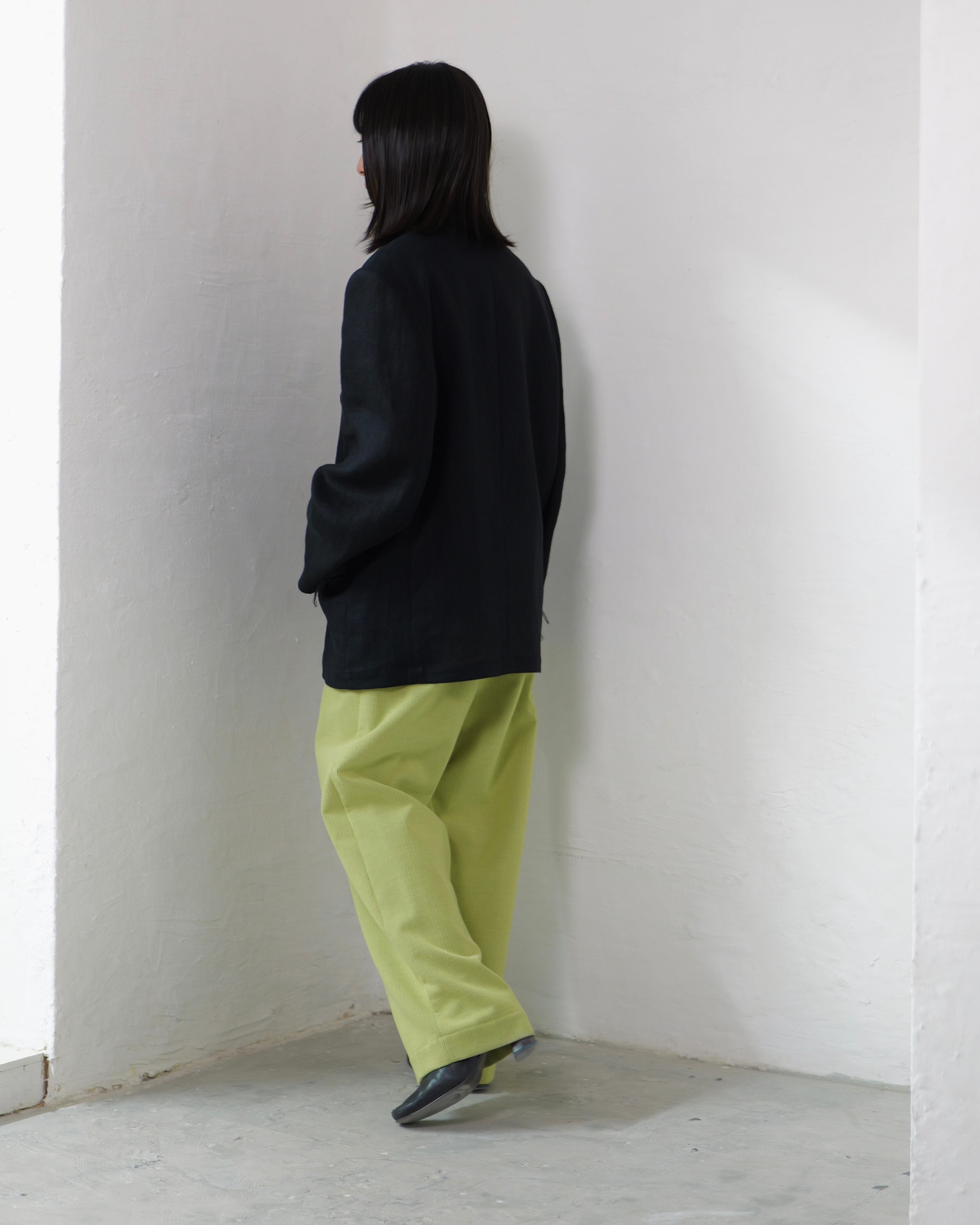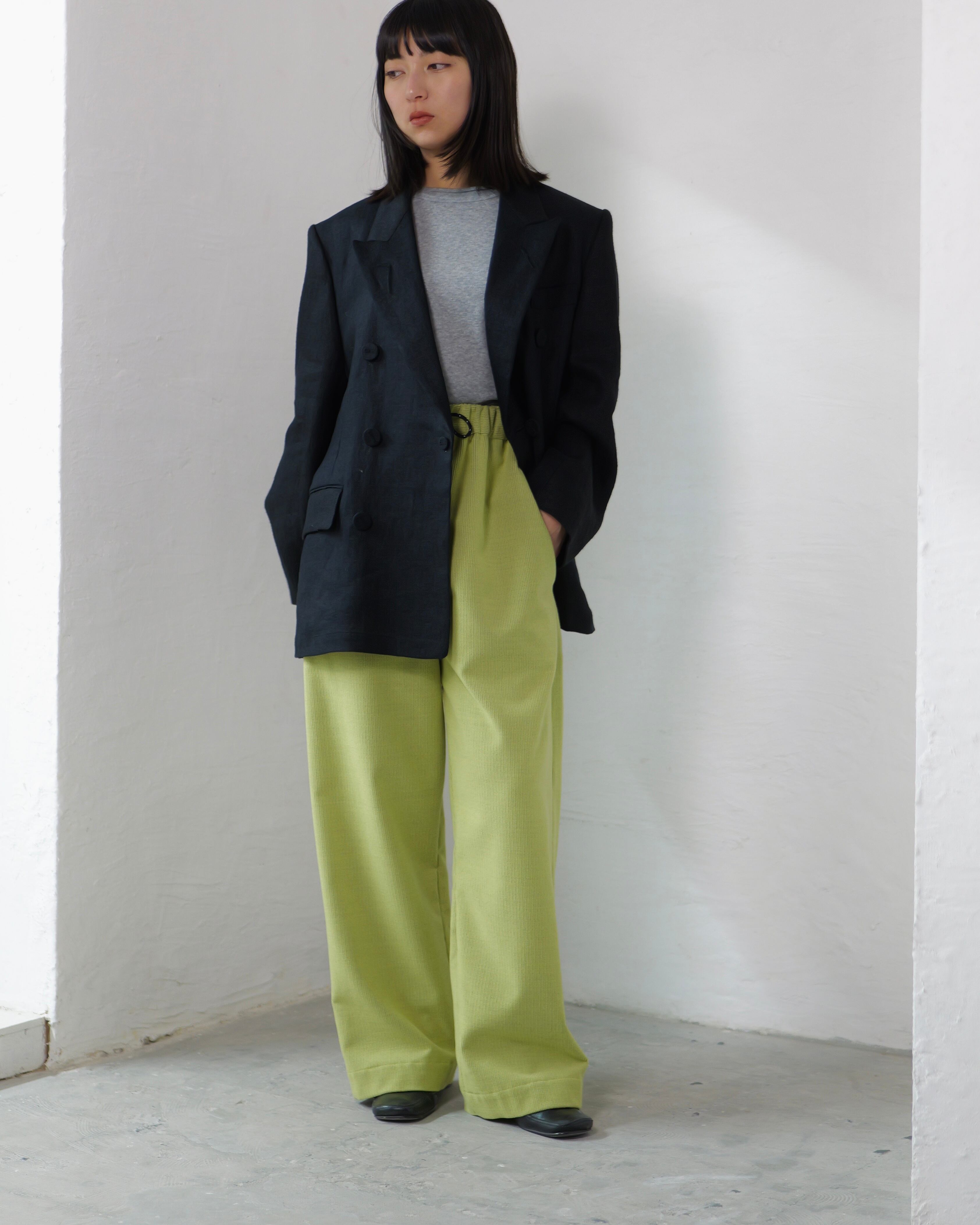 itochi - Wool & Cashmere Corduroy Salt Easy Pants :Lime|ウール×カシミヤコーデュロイ/繊細な起毛/ストレートイージー