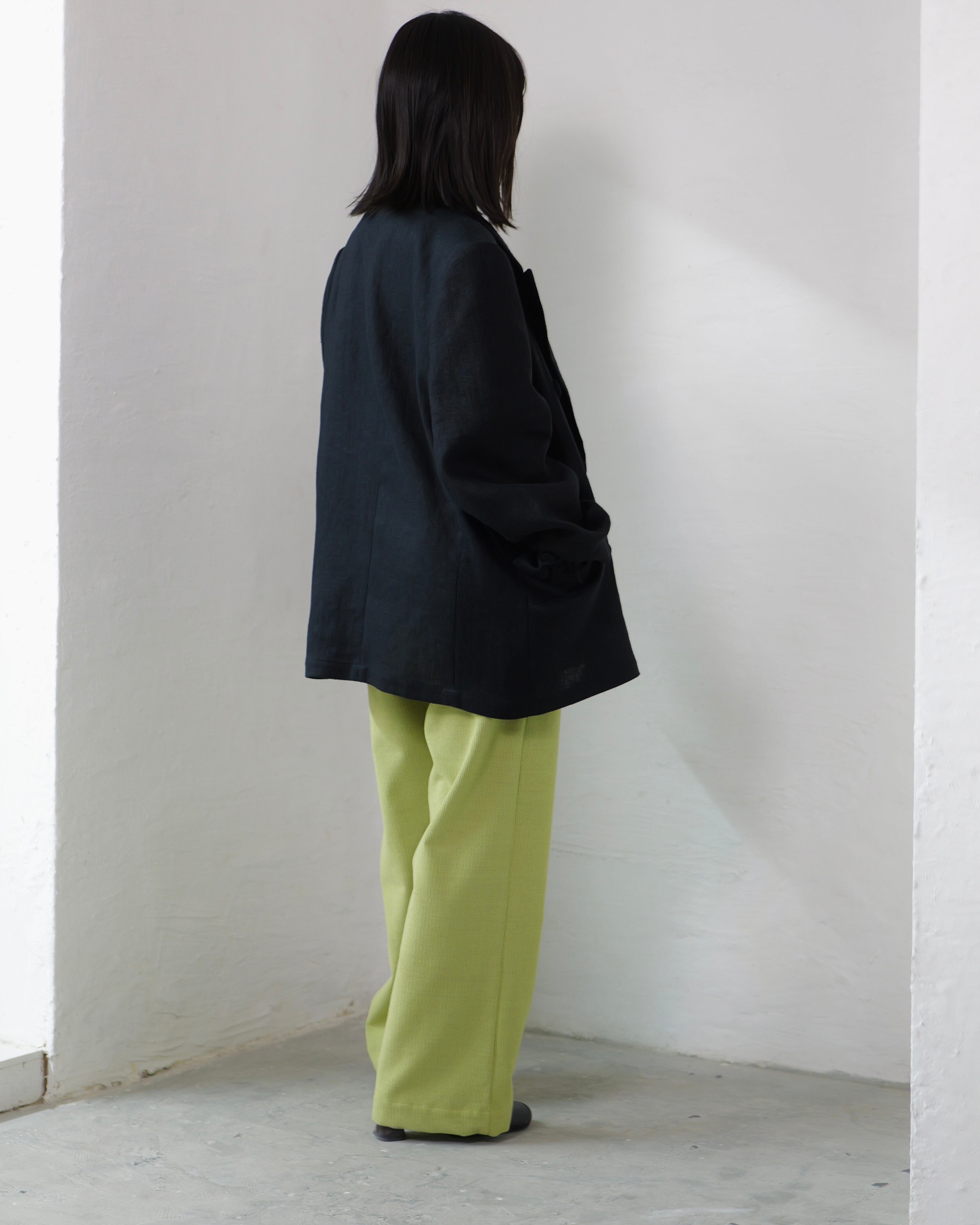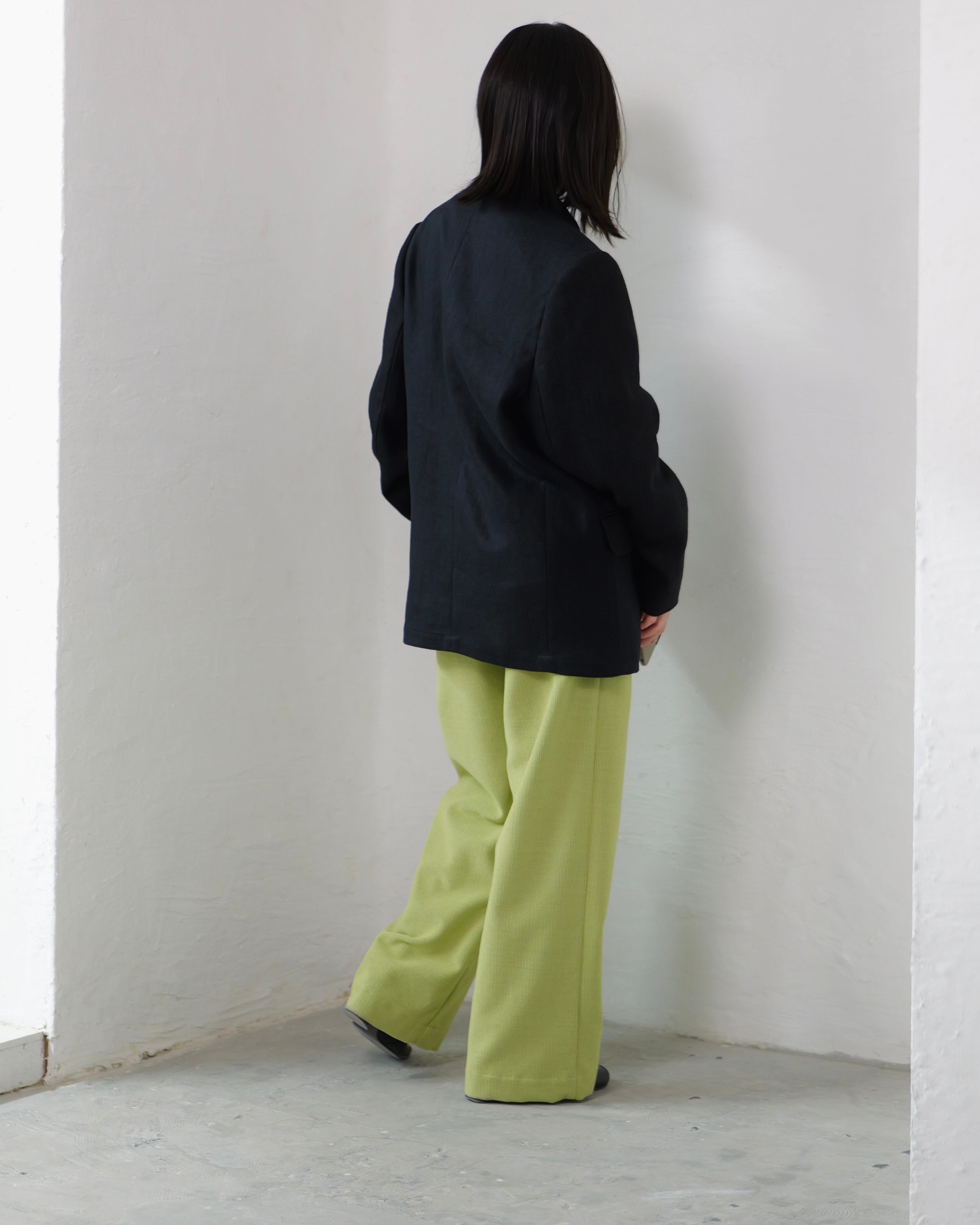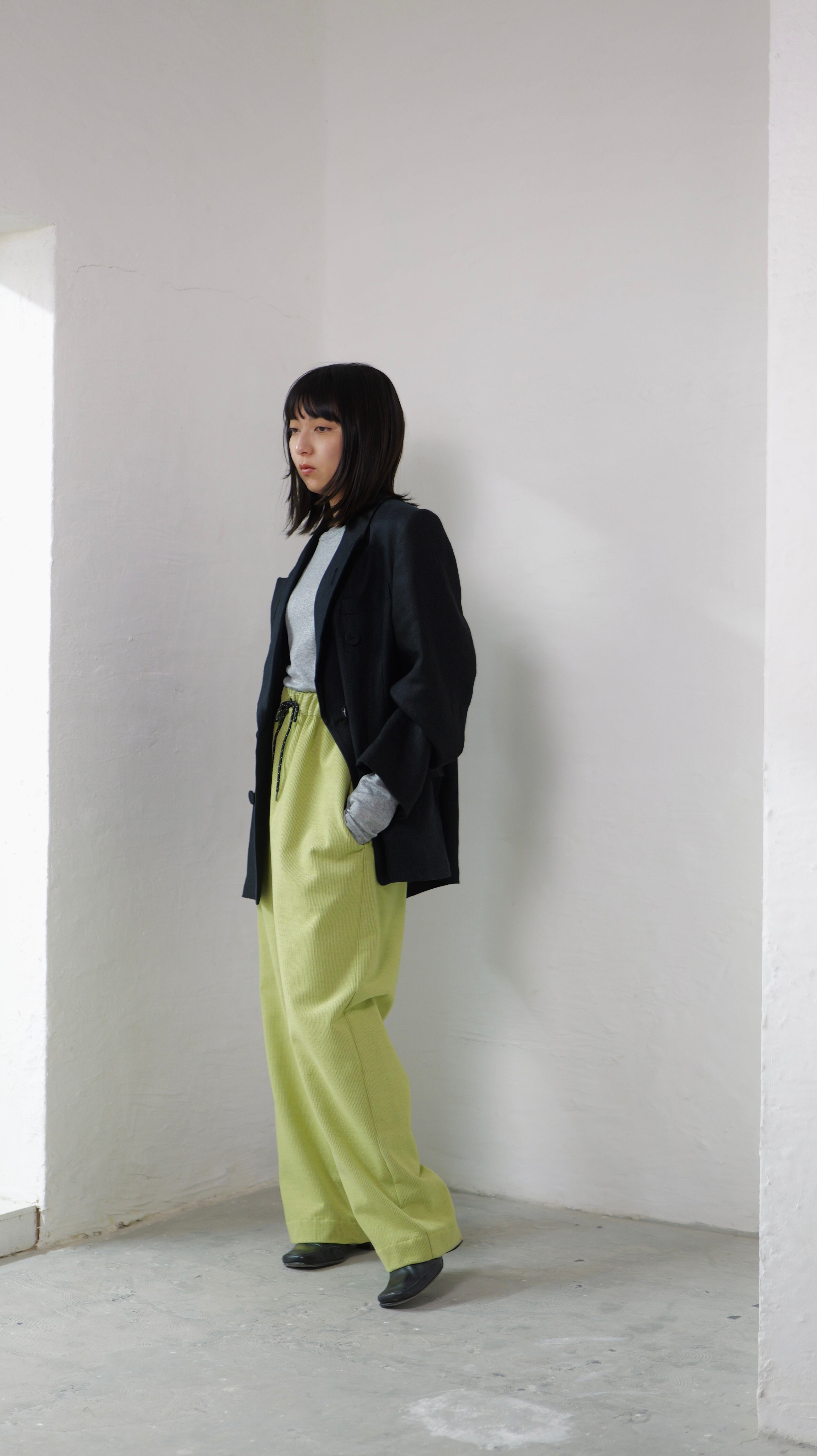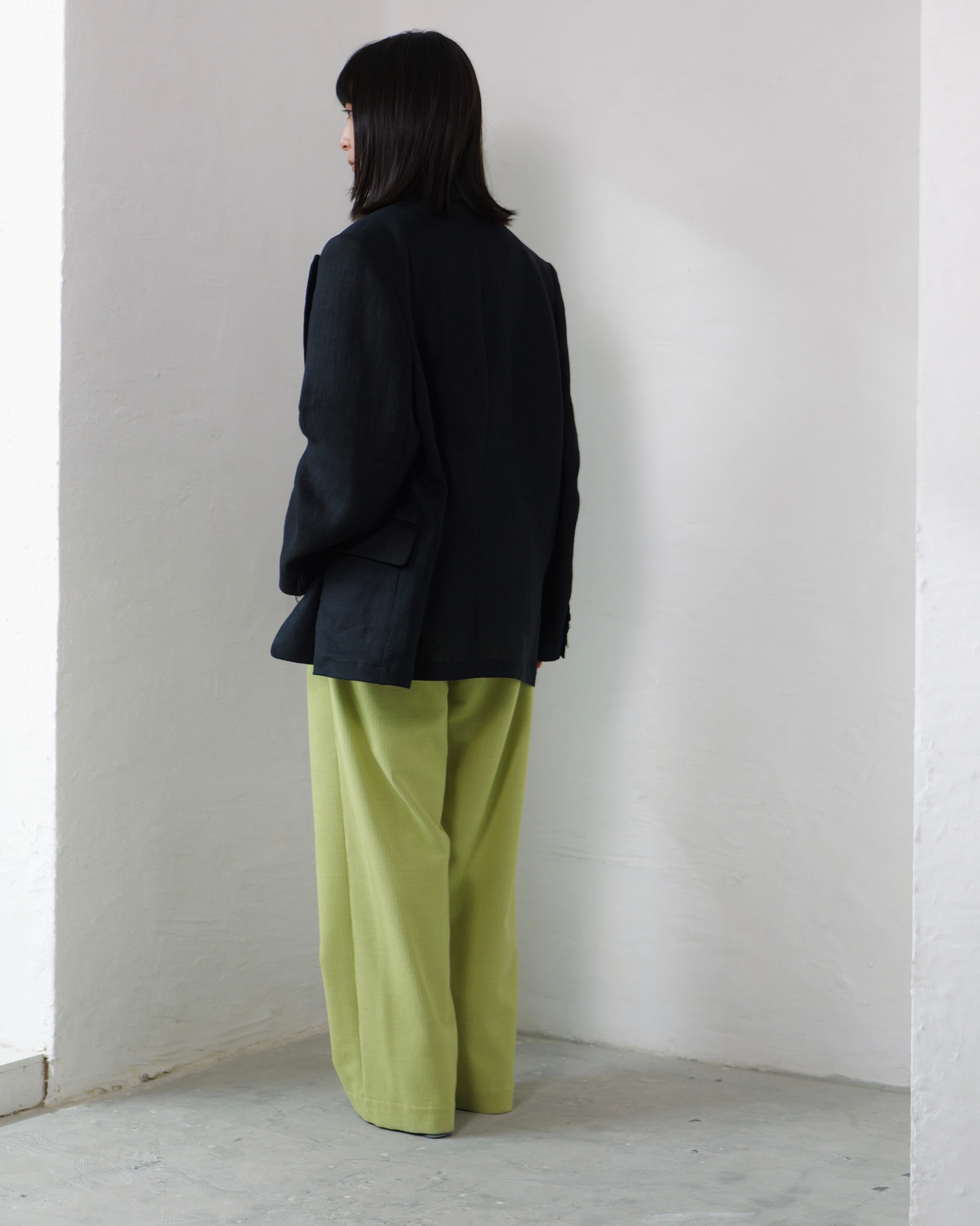 itochi - Wool & Cashmere Corduroy Salt Easy Pants :Lime|ウール×カシミヤコーデュロイ/繊細な起毛/ストレートイージー